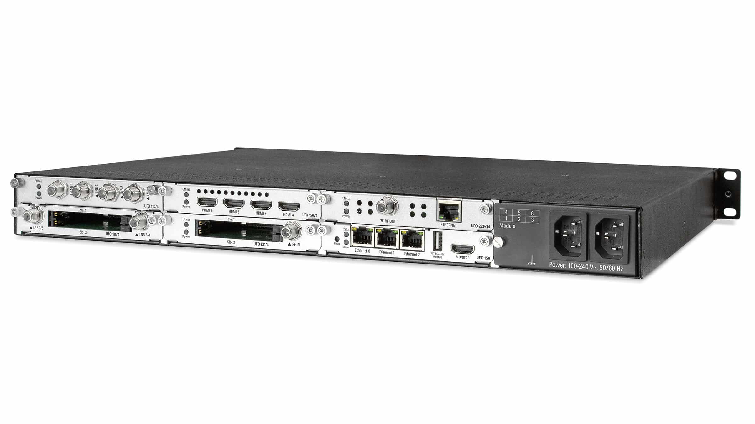 Το Kathrein UFO 101 V1 είναι ένα επαγγελματικό ψηφιακό headend / IPTV σύστημα all-in-one με 6 hot-swap module slots με ενσωματωμένες Gigabit Ethernet & SFP θύρες. Σχεδιασμένο για αξιόπιστη IPTV διανομή & επεξεργασία σήματος σε 19″ rack περιβάλλον. Προσφέρει υψηλής απόδοσης ψηφιακή επεξεργασία σήματος και transmodulation με προηγμένη FPGA τεχνολογία, καθιστώντας το ιδανικό για εγκαταστάσεις σε ξενοδοχεία, MDUs, επιχειρήσεις, νοσοκομεία, αεροδρόμια και λύσεις φιλοξενίας IPTV.